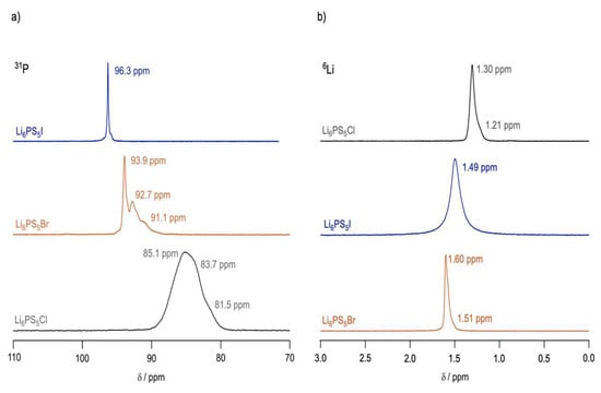 (a) 31P and (b) 6Li MAS spectra for all three argyrodites [].