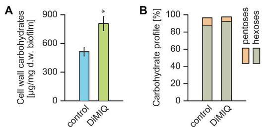 2.2. DiMIQ Alters C. albicans Biofilm Cell Walls