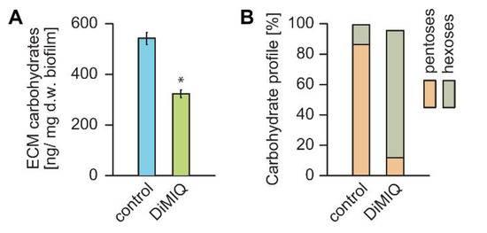2.3. DiMIQ Affects the ECM of C. albicans Biofilm