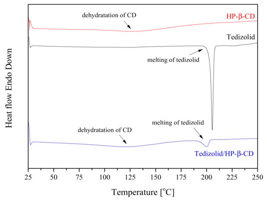 Thermograms of tedizolid, HP-β-CD and tedizolid/HP-β-CD complex.