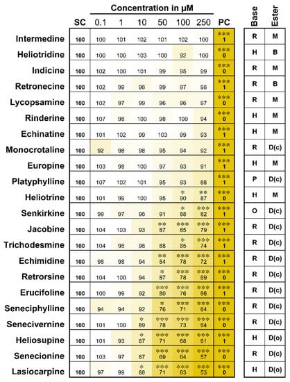 APA StyleGlück, J., Waizenegger, J., Braeuning, A., & Hessel-Pras, S. (2021). Pyrrolizidine Alkaloids Induce Cell Death in Human HepaRG Cells in a Structure-Dependent Manner. International Journal of Molecular Sciences, 22(1), 202. https://doi.org/10.3390/ijms22010202