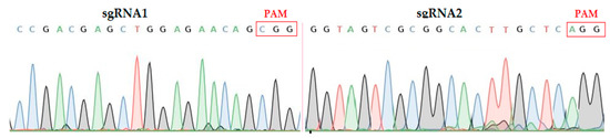 Sequencing chromatograms of both target sites assembled in vector. sgRNA; single guided RNA, PAM; protospacer adjacent motif.