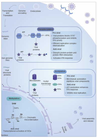 Kumar, R.; Mehta, D.; Mishra, N.; Nayak, D.; Sunil, S. Role of Host-Mediated Post-Translational Modifications (PTMs) in RNA Virus Pathogenesis. Int. J. Mol. Sci. 2021, 22, 323. https://doi.org/10.3390/ijms22010323