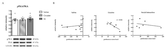 2.1. Phosphorylated PKA (pPKA) Levels were Negatively Correlated with Cocaine Preference in the NAc