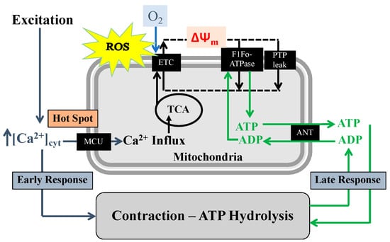 - Maack, C.; O’Rourke, B. Excitation-contraction coupling and mitochondrial energetics. Basic Res. Cardiol. 2007, 102, 369–392. [Google Scholar] [CrossRef] [PubMed]