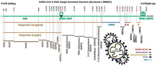 - Kim, D.; Lee, J.Y.; Yang, J.S.; Kim, J.W.; Kim, V.N.; Chang, H. The Architecture of SARS-CoV-2 Transcriptome. Cell 2020, 181, 914–921.e10. [Google Scholar] [CrossRef]