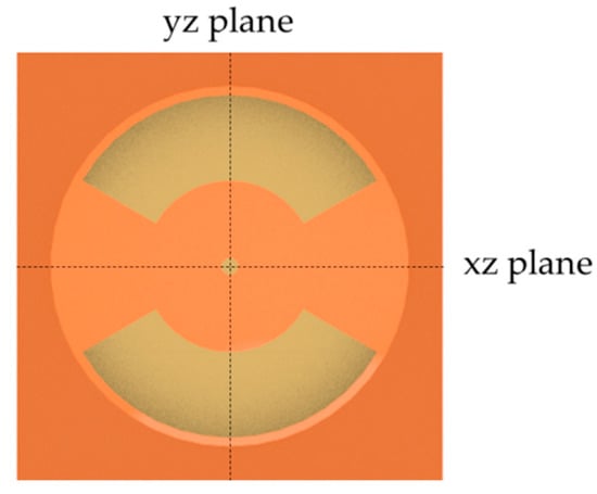 The electrical field distribution inside the new stimulation device was numerically modeled with COMSOL Multiphysics 5.4 (Comsol Multiphysics GmbH, Berlin, Germany). A schematic view of the setup is presented in Figure 2a and a schematic view of one well with labeled plane-direction for electric field simulation is mentioned in Figure 5.