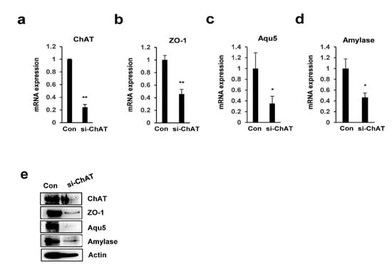 2.4. ChAT Regulates the Expression of Salivary Gland Functional Genes