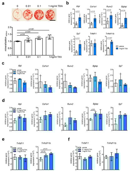 Chicago/Turabian StyleBaranowsky, Anke, Jessika Appelt, Kristina Tseneva, Shan Jiang, Denise Jahn, Serafeim Tsitsilonis, Karl-Heinz Frosch, and Johannes Keller. 2021. "Tranexamic Acid Promotes Murine Bone Marrow-Derived Osteoblast Proliferation and Inhibits Osteoclast Formation In Vitro" International Journal of Molecular Sciences 22, no. 1: 449. https://doi.org/10.3390/ijms22010449
