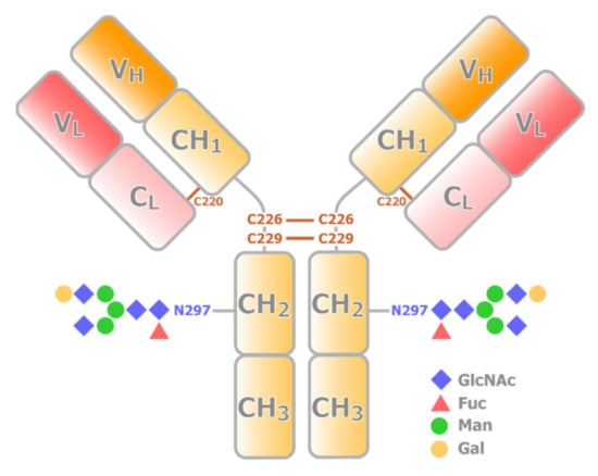 - Reusch, D.; Tejada, M.L. Fc glycans of therapeutic antibodies as critical quality attributes. Glycobiology 2015, 25, 1325–1334. [Google Scholar] [CrossRef]
