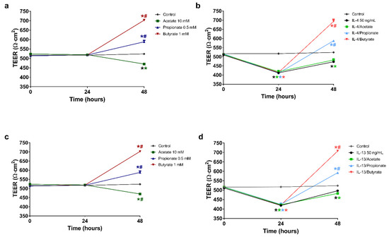 2.4. Butyrate and Propionate Restored the Barrier in IL-13 Compromised 16HBE Cells