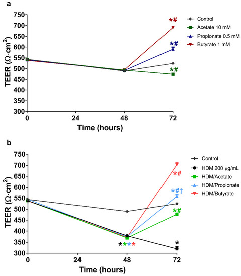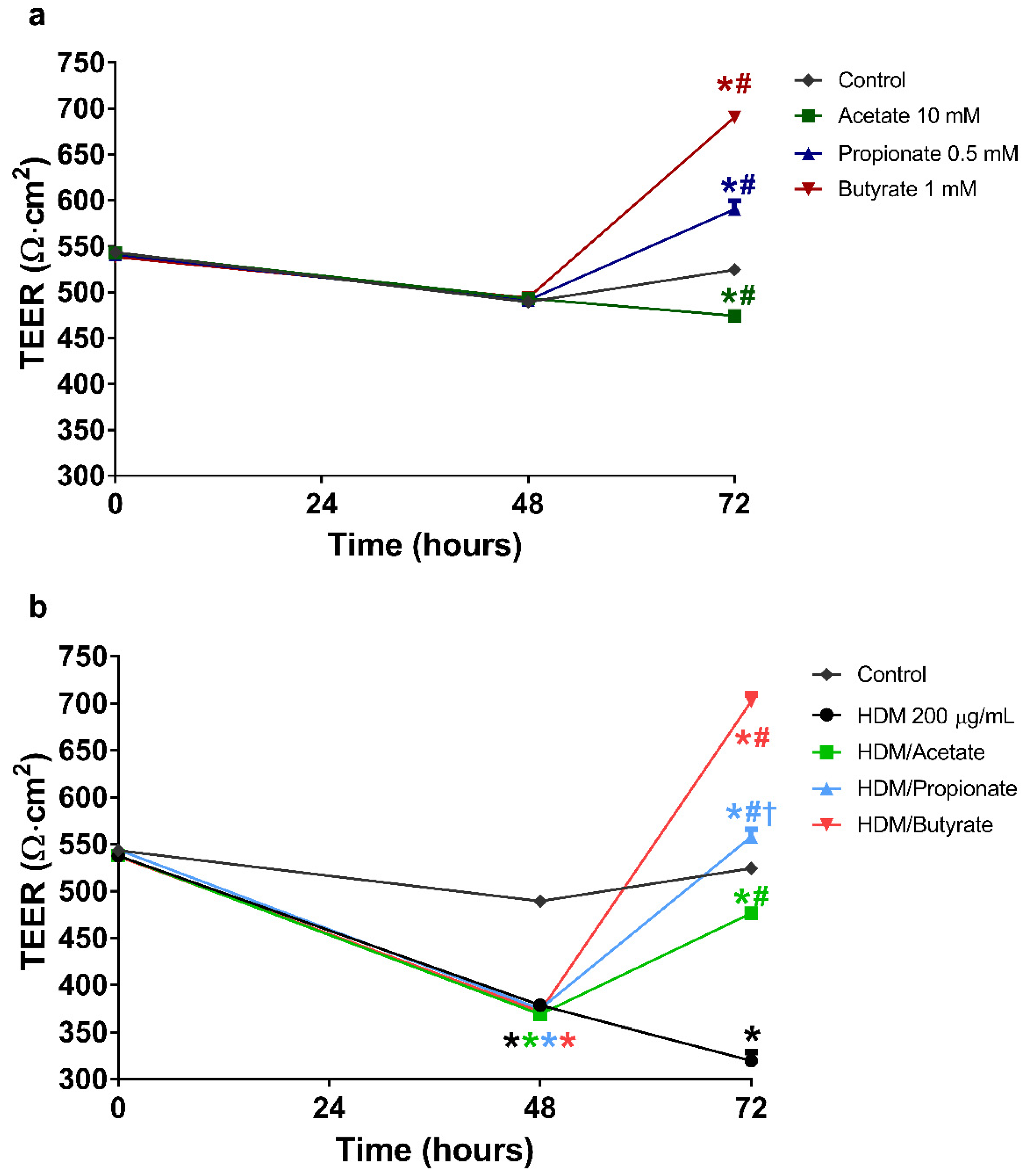 2.5. Butyrate and Propionate Restored the Barrier in HDM Compromised 16HBE Cells