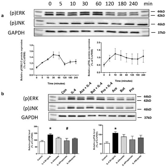 2.7. SCFA Inhibited IL-4-Induced Activation of ERK1/2 and JNK Signalling Pathways