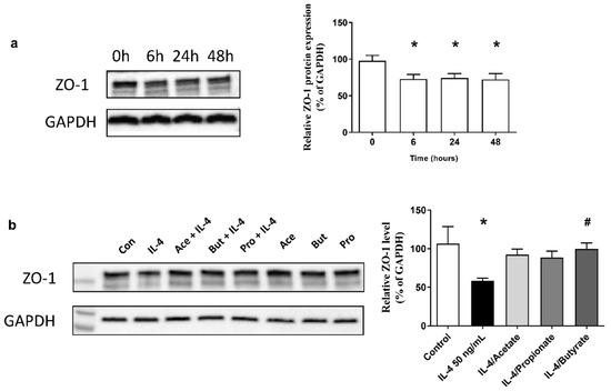 2.8. SCFA Increased ZO-1 Expression in IL-4-Stimulated 16HBE