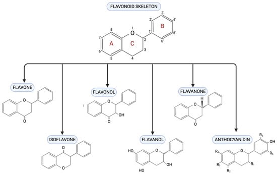Isoflavones, another subclass of flavonoids, are often known as phytoestrogen, as they are able to bind on estrogen receptors [93]. They are chemically differed from other flavonoids in that they have hydroxyl groups in the C7 and C4 positions and also differ in the position of the B ring in C3 [63]. Isoflavones are mainly found in legumes, especially soybeans [94]. Genistein, daidzein, and glycetein are among the most commonly found isoflavones in soy, being the most widely studied isoflavones source. Genistein was found to be able to induce alterations in hormonal and metabolic pathways, influencing the affected pathogenesis of the disease [95].