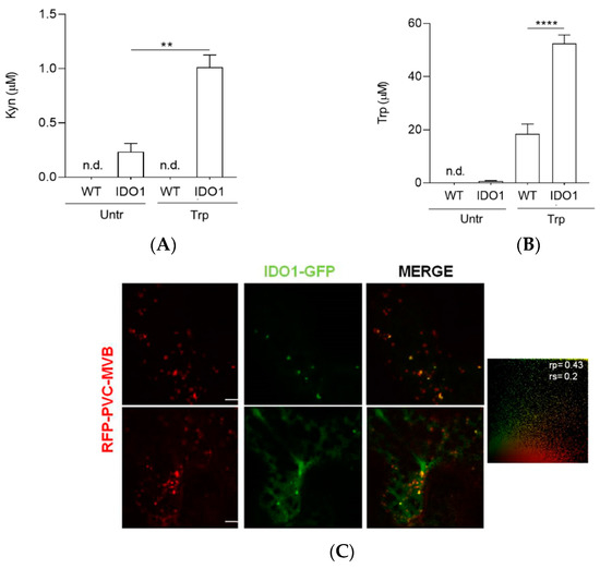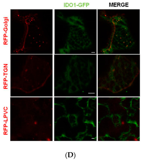 2.3. Transiently Expressed IDO1-GFP Had Catalytic Activity and Similar Subcellular Localisation of Mammal IDO1