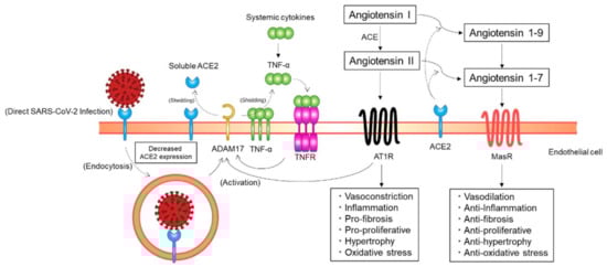 4. Downregulation of ACE2 Expression and Endothelial Dysfunction in COVID-19