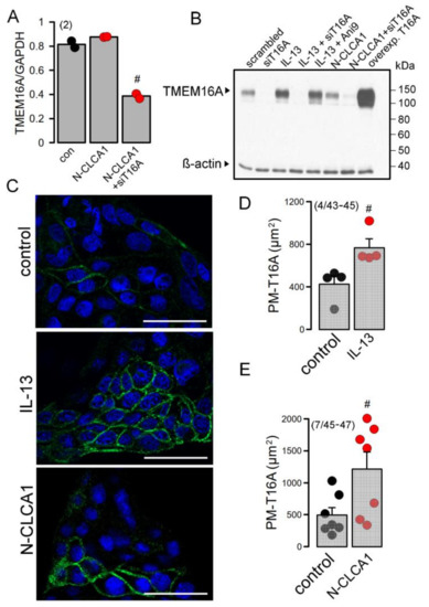 2.3. Expression and Plasma Membrane Localization of TMEM16A Is Enhanced by IL-13 and N-CLCA1, Respectively