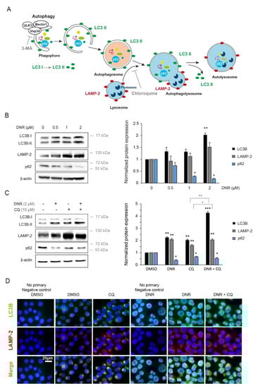 - Han, W.; Sun, J.; Feng, L.; Wang, K.; Li, D.; Pan, Q.; Chen, Y.; Jin, W.; Wang, X.; Pan, H.; et al. Autophagy inhibition enhances daunorubicin-induced apoptosis in K562 cells. PLoS ONE 2011, 6, e28491. [Google Scholar] [CrossRef] [PubMed]