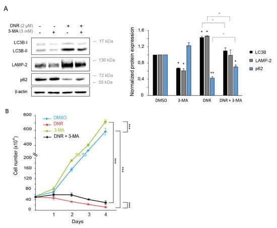 2.2. Autophagy Inhibition Increases Myeloid Cell Growth and Prevents Downregulation by Daunorubicin