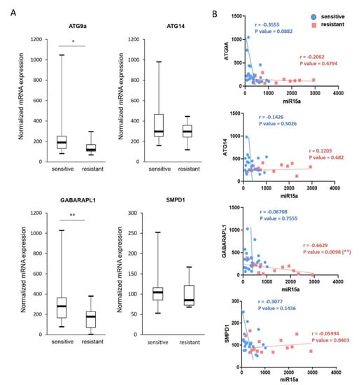 2.7. Expression of ATG9A, ATG14, and GABARAPL1 Are Downregulated in Chemoresistant AML Patients