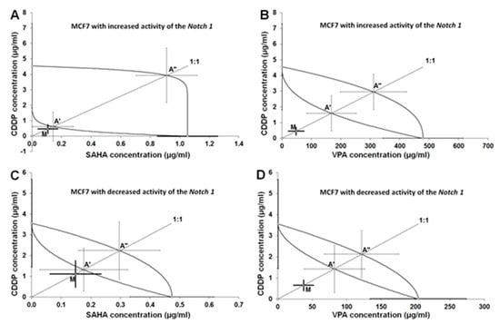 2.6. Type I Isobolographic Analysis of Interaction for the Combinations of CDDP with SAHA or VPA on Notch1lowMCF7 Cells