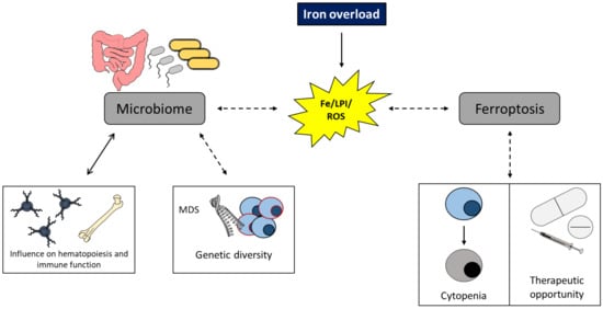 - Franke, G.N.; Kubasch, A.S.; Cross, M.; Vucinic, V.; Platzbecker, U. Iron overload and its impact on outcome of patients with hematological diseases. Mol. Aspects Med. 2020, 75, 100868. [Google Scholar] [CrossRef]