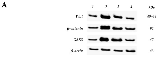 4.3.5. Western Blot Analysis for Wnt, β-Catenin and GSK-3β Proteins