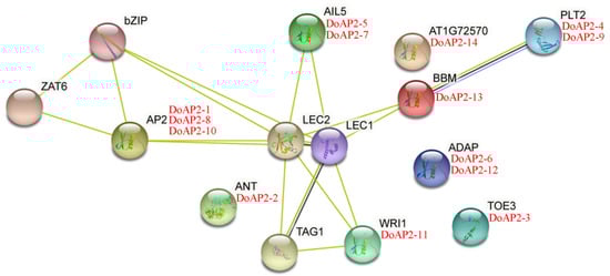 2.2. Prediction of Protein–Protein Interaction Network of AP2 Proteins