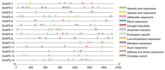 2.3. Analysis of Cis-Regulatory Elements in the Promoters of DoAP2 Genes