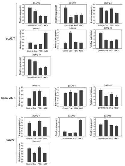 3.3. DoAP2 Genes May Play a Role in Abiotic Stress Response