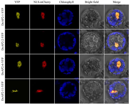 2.6. Subcellular Localization of Selected DoAP2 Proteins