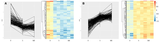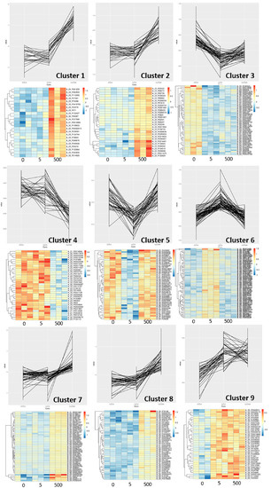 - Conesa, A.; Nueda, M.J.; Ferrer, A.; Talón, M. maSigPro: A method to identify significantly differential expression profiles in time-course microarray experiments. Bioinformatics 2006, 22, 1096–1102. [Google Scholar] [CrossRef]
