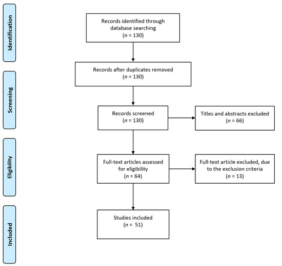The flow diagram of the selecting process is shown in Figure 1. Initially, 130 relevant articles were identified from the Pubmed database. Titles and abstracts of all the articles were screened, and 64 of them were considered as eligible. We further reviewed the full texts of the remaining studies, of which 51 studies met our inclusion criteria and were included in our study.