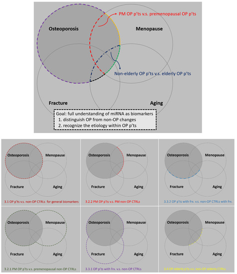 - Weilner, S.; Skalicky, S.; Salzer, B.; Keider, V.; Wagner, M.; Hildner, F.; Gabriel, C.; Dovjak, P.; Pietschmann, P.; Grillari-Voglauer, R.; et al. Differentially circulating mirnas after recent osteoporotic fractures can influence osteogenic differentiation. Bone 2015, 79, 43–51. [Google Scholar] [CrossRef]
