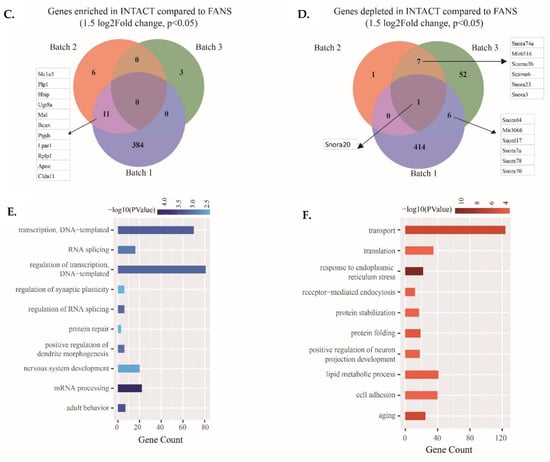 2.5. Transcriptional Differences of Low-Input RNA-Seq from FANS-Nuclei vs. INTACT-Nuclei