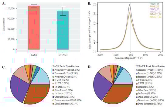 2.6. ATAC-Seq Reveals Differences in Chromatin Accessibility State between FANS- and INTACT-Nuclei