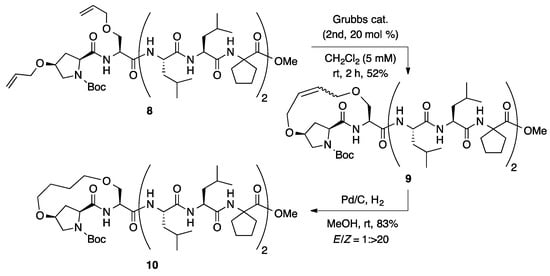 Ring-closing metathesis of octapeptide 8 at i,i + 1 positions.