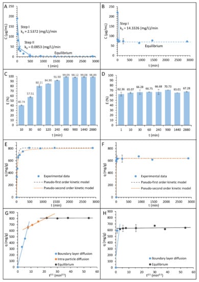 | Zero Order Kinetics Model | Pseudo-First Order Kinetics Model | Pseudo-Second Order Kinetics Model | Intra-Particle Diffusion Model | ||||
