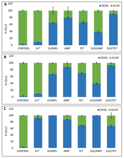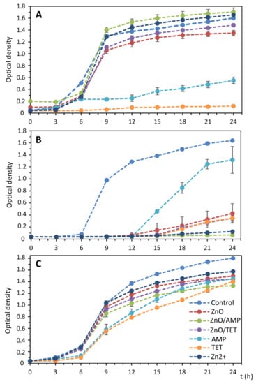 | ZnONPs | ZnONPs/AMP | ZnONPs/TET | |||