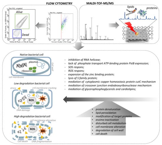 2.6. MALDI-TOF MS Analysis of Proteins and Lipids Extracted from the Bacterial Cells Treated with Selected Antimicrobial Agents