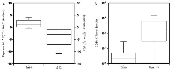- Malhotra, S.; Alsulami, A.F.; Heiyun, Y.; Ochoa, B.M.; Jubb, H.; Forbes, S.; Blundell, T.L. Understanding the Impacts of Missense Mutations on Structures and Functions of Human Cancer-Related Genes: A Preliminary Computational Analysis of the COSMIC Cancer Gene Census. PLoS ONE 2019, 14, e0219935. [Google Scholar] [CrossRef]