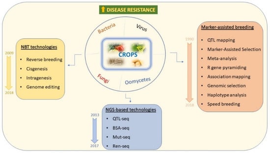 Mores A, Borrelli GM, Laidò G, Petruzzino G, Pecchioni N, Amoroso LGM, Desiderio F, Mazzucotelli E, Mastrangelo AM, Marone D. Genomic Approaches to Identify Molecular Bases of Crop Resistance to Diseases and to Develop Future Breeding Strategies. International Journal of Molecular Sciences. 2021; 22(11):5423. https://doi.org/10.3390/ijms22115423