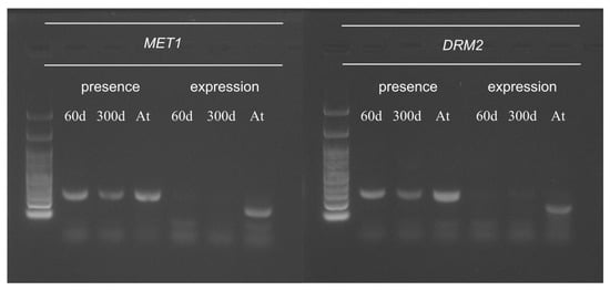 Presence and expression of Arabidopsis methyltransferases in the 60- and 300-day-old hybrid cell lines. 60d: 60-day-old hybrid cell line, 300d: 300-day-old hybrid cell line, and At: wild-type Arabidopsis plant.