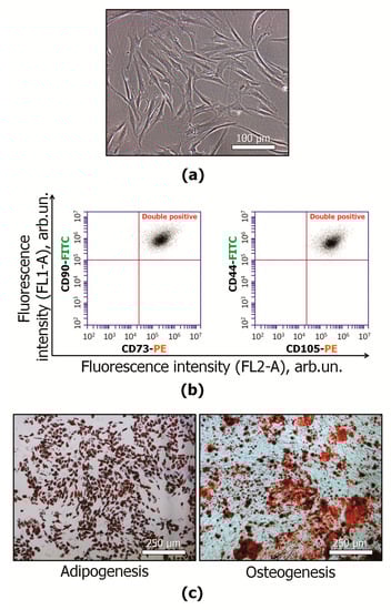 - Dominici, M.; Le Blanc, K.; Mueller, I.; Slaper-Cortenbach, I.; Marini, F.C.; Krause, D.S.; Deans, R.J.; Keating, A.; Prockop, D.J.; Horwitz, E.M. Minimal criteria for defining multipotent mesenchymal stromal cells. The International Society for Cellular Therapy position statement. Cytotherapy 2006, 8, 315–317. [Google Scholar] [CrossRef]