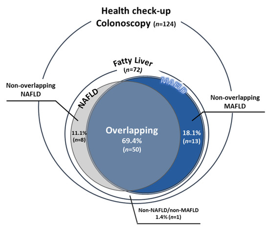 - Lin, S.; Huang, J.; Wang, M.; Kumar, R.; Liu, Y.; Liu, S.; Wu, Y.; Wang, X.; Zhu, Y. Comparison of MAFLD and NAFLD diagnostic criteria in real world. Liver Int. 2020, 40, 2082–2089. [Google Scholar] [CrossRef] [PubMed]