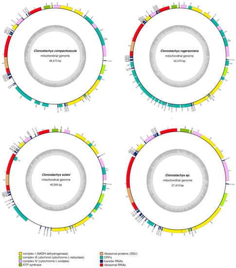 Zhao, Z.; Zhu, K.; Tang, D.; Wang, Y.; Wang, Y.; Zhang, G.; Geng, Y.; Yu, H. Comparative Analysis of Mitochondrial Genome Features among Four Clonostachys Species and Insight into Their Systematic Positions in the Order Hypocreales. Int. J. Mol. Sci. 2021, 22, 5530. https://doi.org/10.3390/ijms22115530