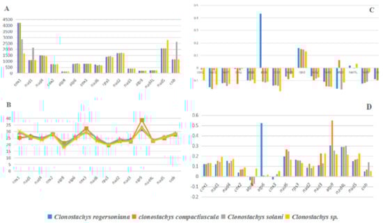 2.2. Characteristics of the Mitogenome of Four Clonostachys Species
