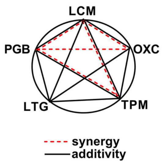 | LCM + LTG + VPA | Antagonism | 1.27 | [23] |