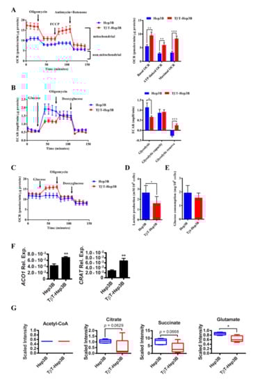 2.4. TβT-Hep3B Shows Increased Mitochondrial Oxidative Metabolism